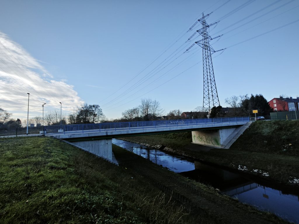 Für den Ersatzneubau einer Brücke über die Emscher hat unser Büro den Entwurf des Bauwerks bis zur Ausführungsplanung übernommen. Die 1912 errichtete Stahl-Fachwerk Brücke über die Emscher zwischen Recklinghausen und Herne war den gestiegenen Verkehrs- und Lastanforderungen der letzten Jahrzehnte nicht mehr gewachsen und wird aktuell durch eine neue Konstruktion ersetzt. Der Neubau wird eine Stützweite von 24 Metern und eine Breite von 12 Metern aufweisen, um FußgängerInnen, FahrradfahrerInnen und AutofahrerInnen mehr Platz zu bieten.